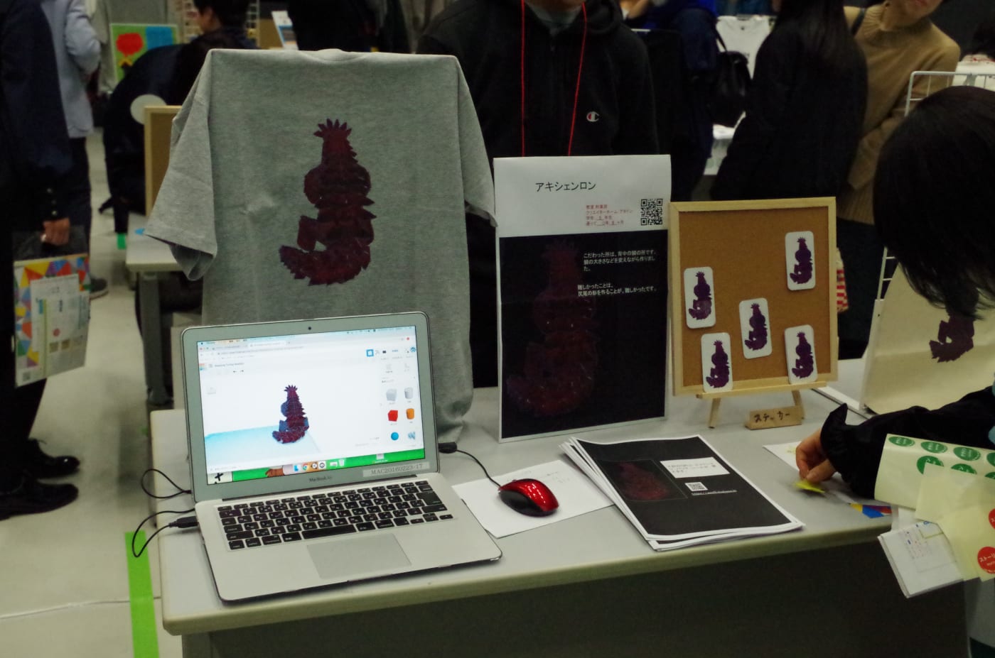 今回のフェスでは、生徒さんたちのデザインしたグッズを販売する試みも行われ、Tシャツやステッカーなど、ステキなデザインの商品がたくさんありました。期間内、お客さんはQRコードでアクセスしてサイトから購入できます。売上は日本科学未来館に寄付するそうです。