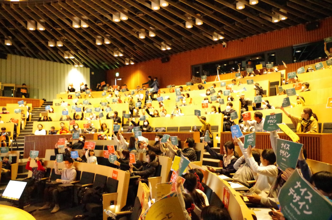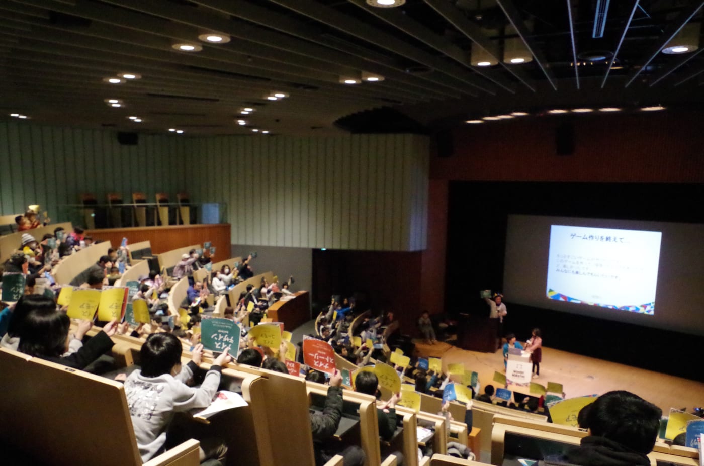 「未来プレゼンホール」で行われたプレゼン発表。大人でも緊張しそうなこの舞台で、たくさんの観客を前に、みんな堂々と発表していました。