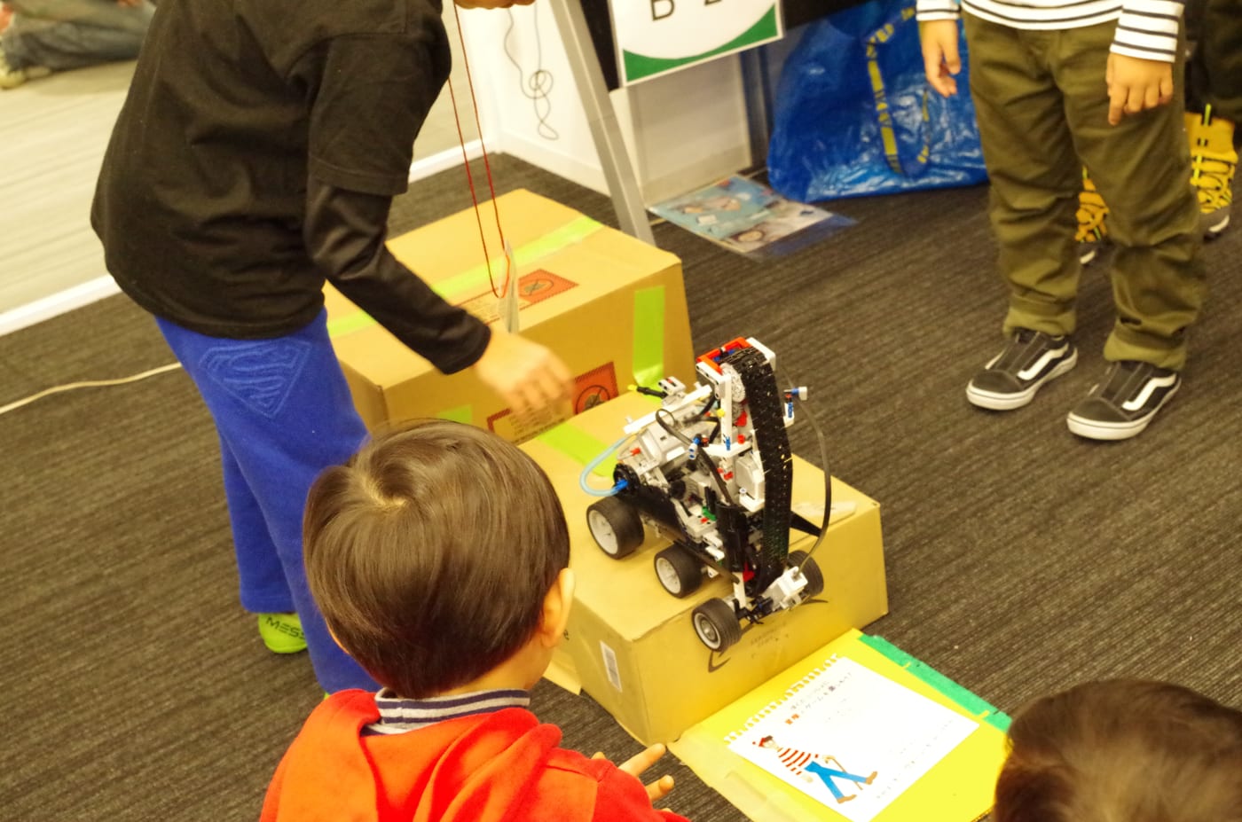 睦くん:LEGOでのロボットプレゼンを始めたのはLITALICOワンダーに通い始めてからです。昨年のフェスでは、リモコンで動く作品をEV3で作って出展しました。プログラミングも好きですね。