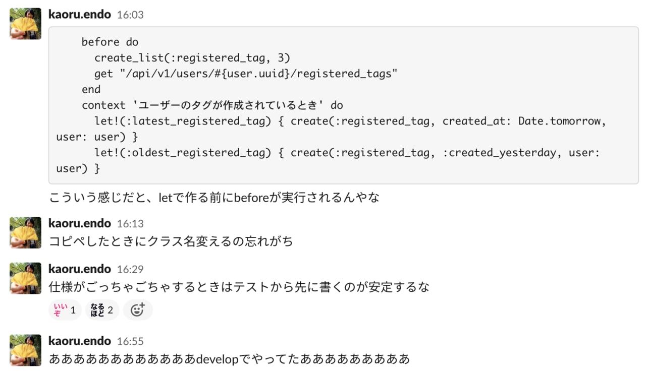 「コードが動くかどうか」とは別に、「設計として美しいか(一般的でわかりやすい書き方かどうか)」という視点からもコメントをいただけたので嬉しかったですね。