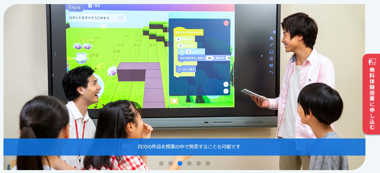 また、お子様1人ひとりの学習ペースや理解度に合わせた指導を行うから、プログラミング学習に挫折しづらいことがメリット。授業ではiPadを利用するため、入会を検討している場合は用意しておきたいですね。実際に授業の雰囲気をつかみたい場合は、無料体験授業に申し込んでみましょう。