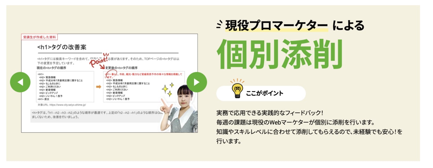Webマーケティング職の求人対策 | 3ヶ月~最大9ヶ月+実務で転職や独立に役立つ実績構築可能 | 応募前書類添削・提案練習を実施 現役Webマーケターによる相談会あり |