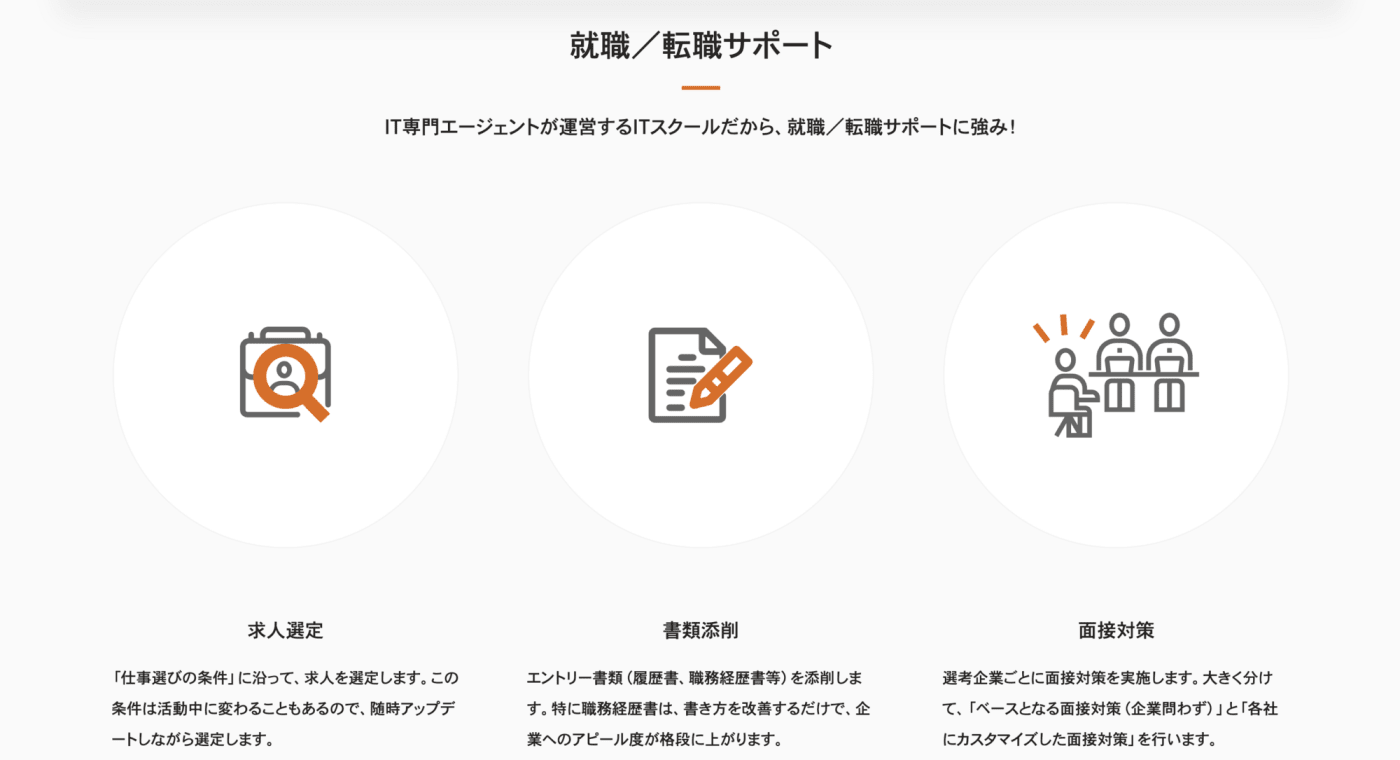 学習の進捗はどうしても自分のモチベーションや能力に左右されるので、「メンターと二人三脚で進むカリキュラムや、手厚い就業サポートがセットになったスクールはないのかな?」と考える人も多いのでは。