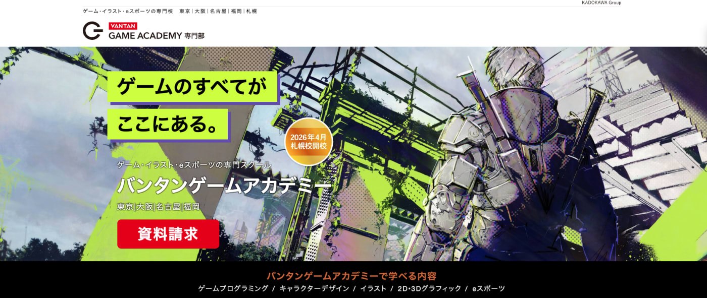 バンタンクリエイターアカデミーは、ゲーム・イラスト・eスポーツなどが学べる専門校です。