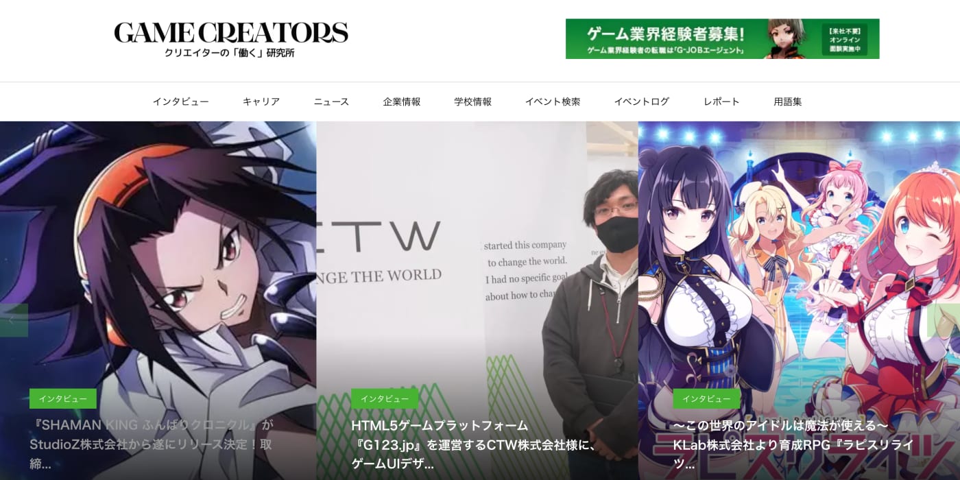 ゲーム業界で「働く人」「働きたい人」に役立つ情報が満載