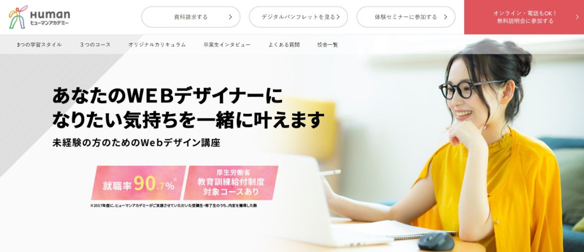 現役Webデザイナー講師と就職サポートが揃うヒューマンアカデミー