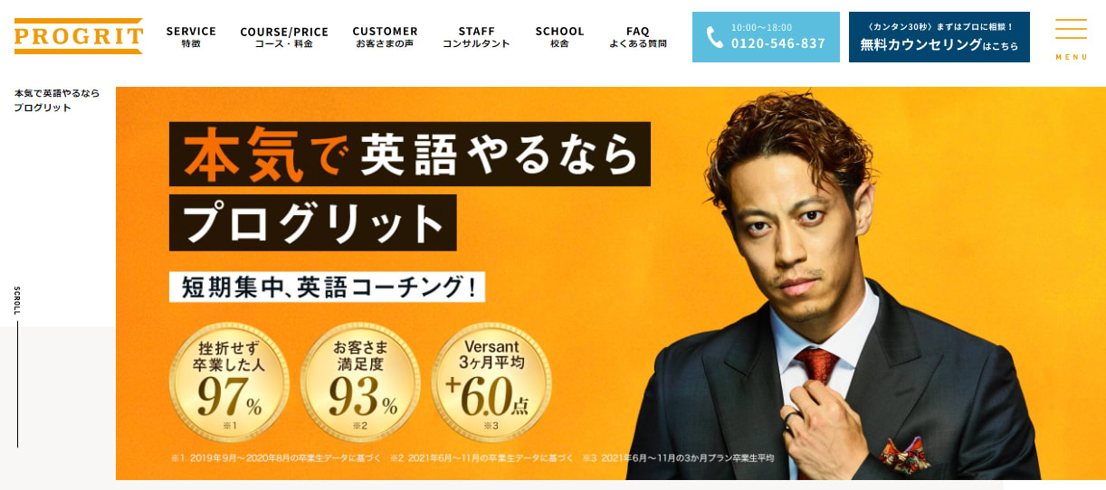 RIZAP ENGLISH(ライザップイングリッシュ)は、「結果にコミットする。®」で知られるパーソナルジムRIZAPのメソッドをカスタマイズした英会話スクールです。対面だけでなく、オンラインでも教室と同様のレッスンを受けられるため、近くに教室がない方も受講できます。ライザップイングリッシュには「TOEIC®L&R TEST スコアアップコース」があり、点数保障*がついていることが大きな特徴です。過去に2ヶ月でTOEIC®スコア最大361点UPの実績もあり、安心感もありますね。目標点数から伸ばすべきスキルを分析し、必要な学習やトレーニングを実施することで効率的にスコアアップを目指せます。