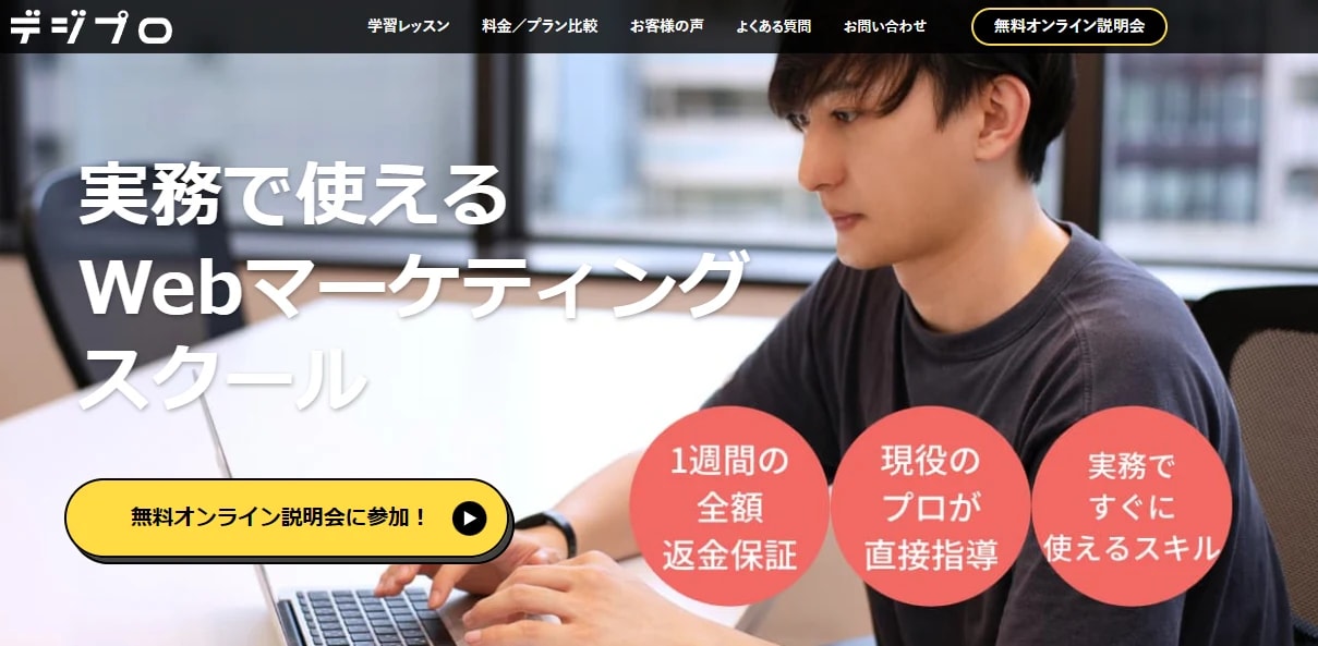 デジプロは、未経験から2ヶ月でプロのWebマーケターを目指すスクールです。