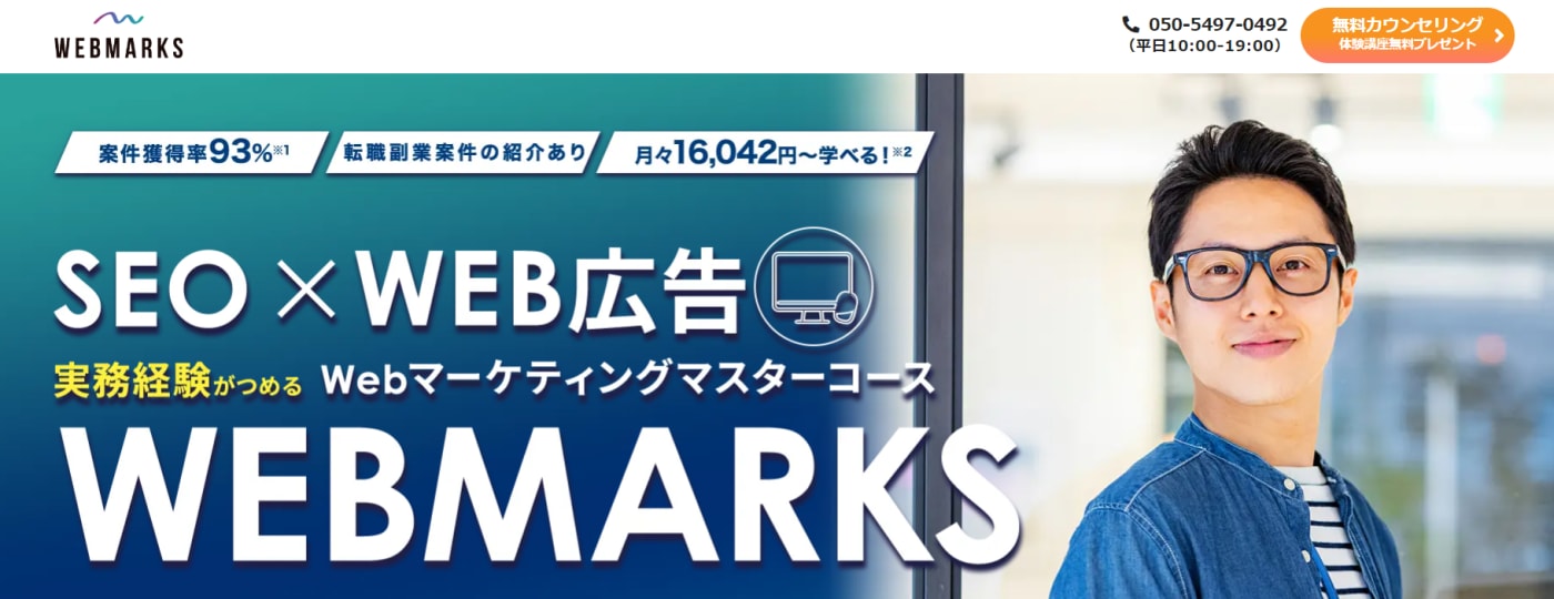 Webマーケをしっかり学べて初心者でも安心のサービス内容!
