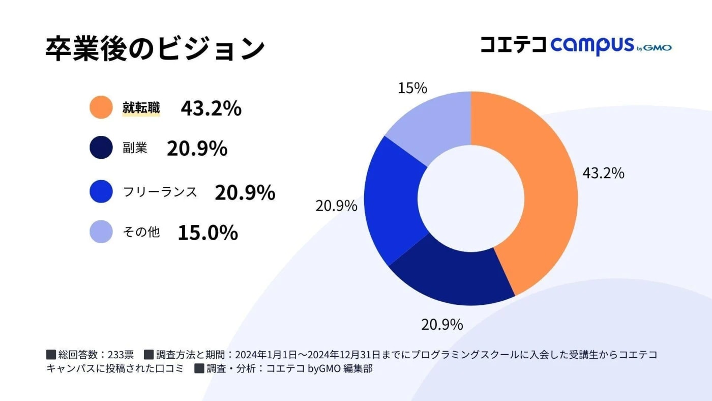 しかし、プログラミングスクールで学習してスキルを身につけた上で、適切な就職支援を受けることができれば、その可能性は格段に上げられるでしょう。