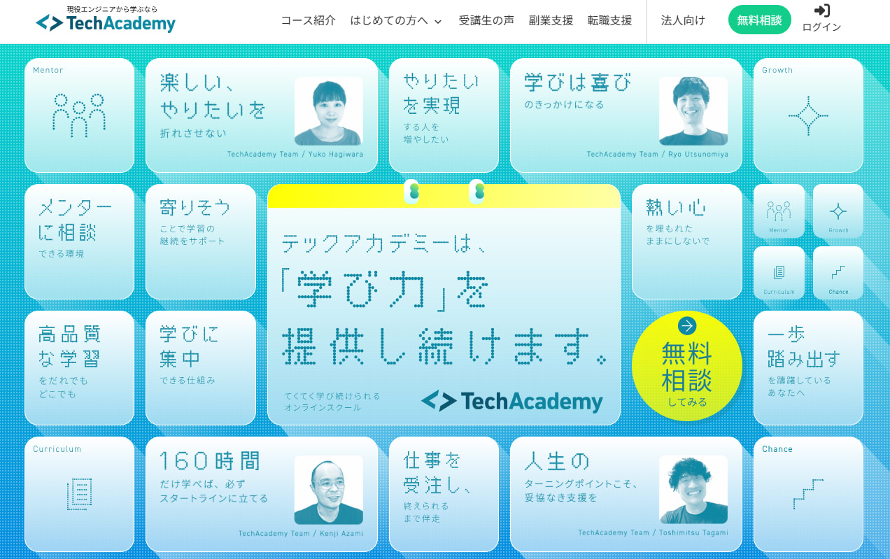 無料で学べるプログラミングスクールを探している方は、【無料プログラミングスクールおすすめ9選】もご覧ください。