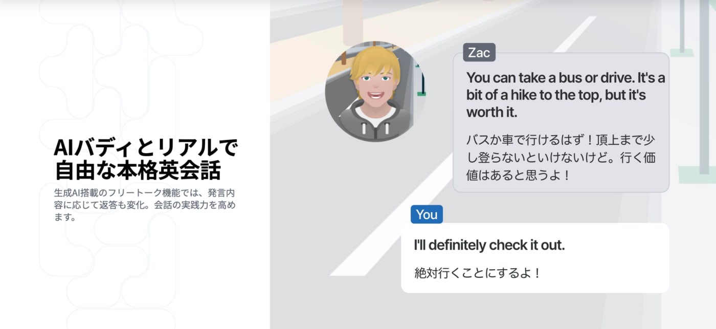 AIが相手なので、英語が全く話せない初心者でも間違いを恐れる必要がなく、自分のペースで何度も練習できます。