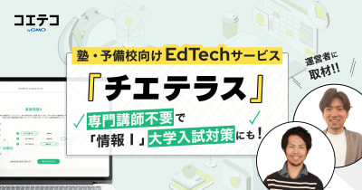 「情報I」に特化した塾・予備校・スクール向けカリキュラムのEdTechサービス『チエテラス』が2023年3月にリリースされました。予備校や塾への手厚いサポートもあり、導入も簡単なことか...