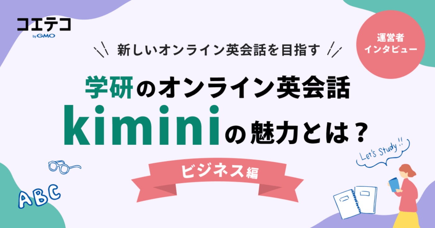 kimini英会話は、教育業界大手の学研グループが運営するオンライン英会話スクール。コースや教材が充実しており、自分に合ったコースを見つけやすい点が魅力です。