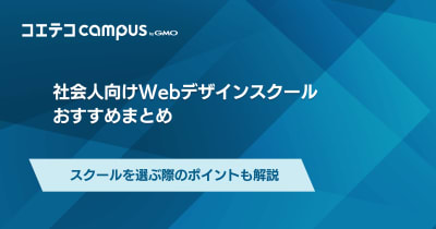 社会人向けWebデザインスクールおすすめ13選!選ぶ際のポイントも解説 忙しい社会人にとって新たにWebデザインを学ぶための時間を捻出することは容易ではありません。そんな忙しい社会人におすすめしたいWebデザインを学ぶ方法として、Webデザインスクールをお... 2025.10.30|コエテコ byGMO 編集部
