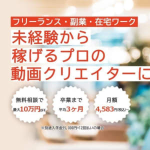 カリキュラムは、過去に実際に受注した依頼をもとに組まれているため、非常に実践的な内容を学ぶことができます。卒業後は、卒業したコースに沿った案件の紹介を「むびる」「VideoWorks」から紹介してもらえるので、学んだ内容を生かしてすぐに稼ぎ始めることができるのも大きな魅力です。受講料は分割払いの場合だと最安で月々4,583円から始めれます。