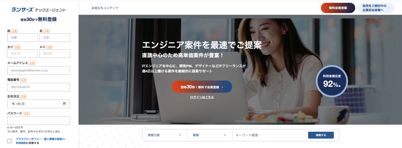幅広い案件&柔軟なキャリアサポートが魅力「ランサーズテックエージェント」