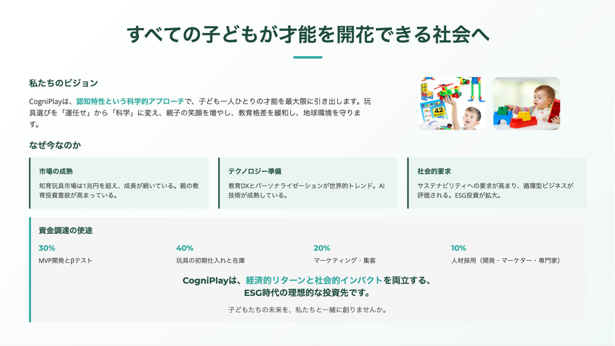 画面共有で見せてもらったのは「Manus」というAIツールのデモ。プロンプトを入力すれば、競合リサーチから市場分析まで含んだ資料が、統一デザインで一気に生成されていきます。その完成度に、正直かなり衝撃を受けました。