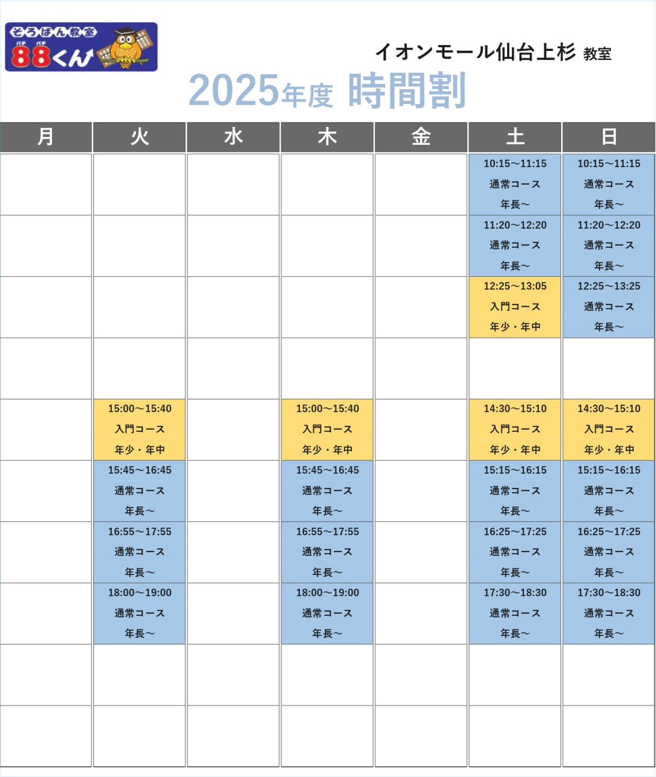 教室名 そろばん教室88くん イオンモール仙台上杉