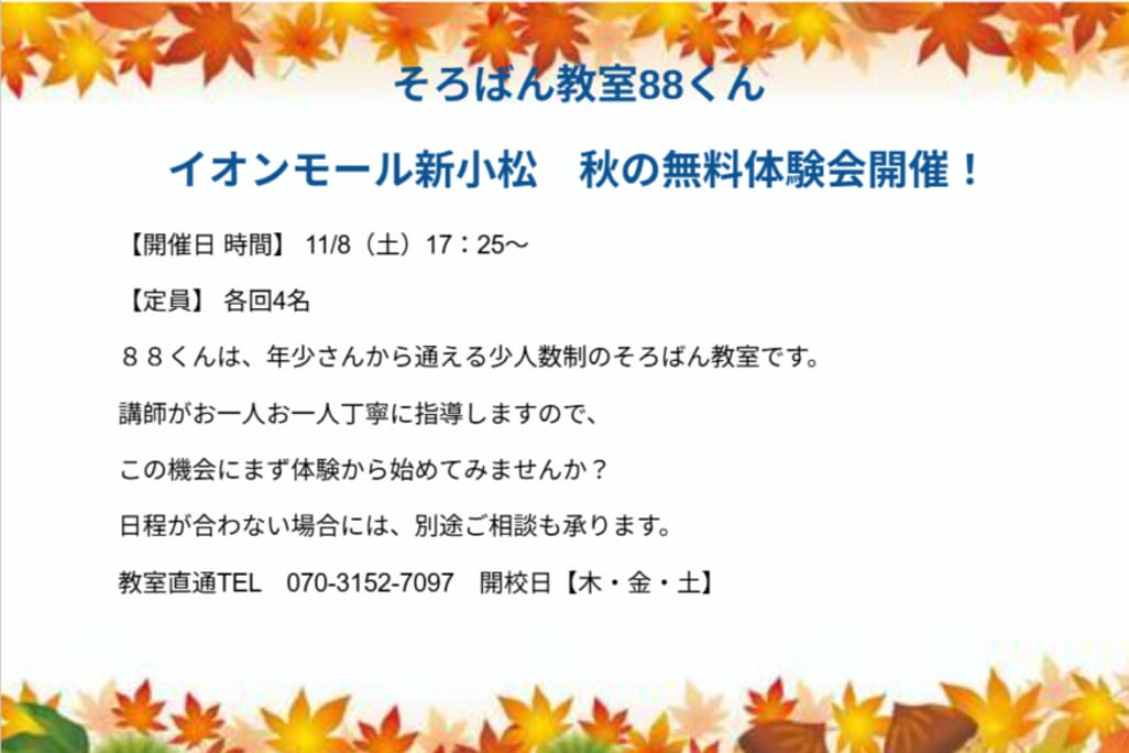 | 教室名 | そろばん教室88くん イオンモール新小松 |