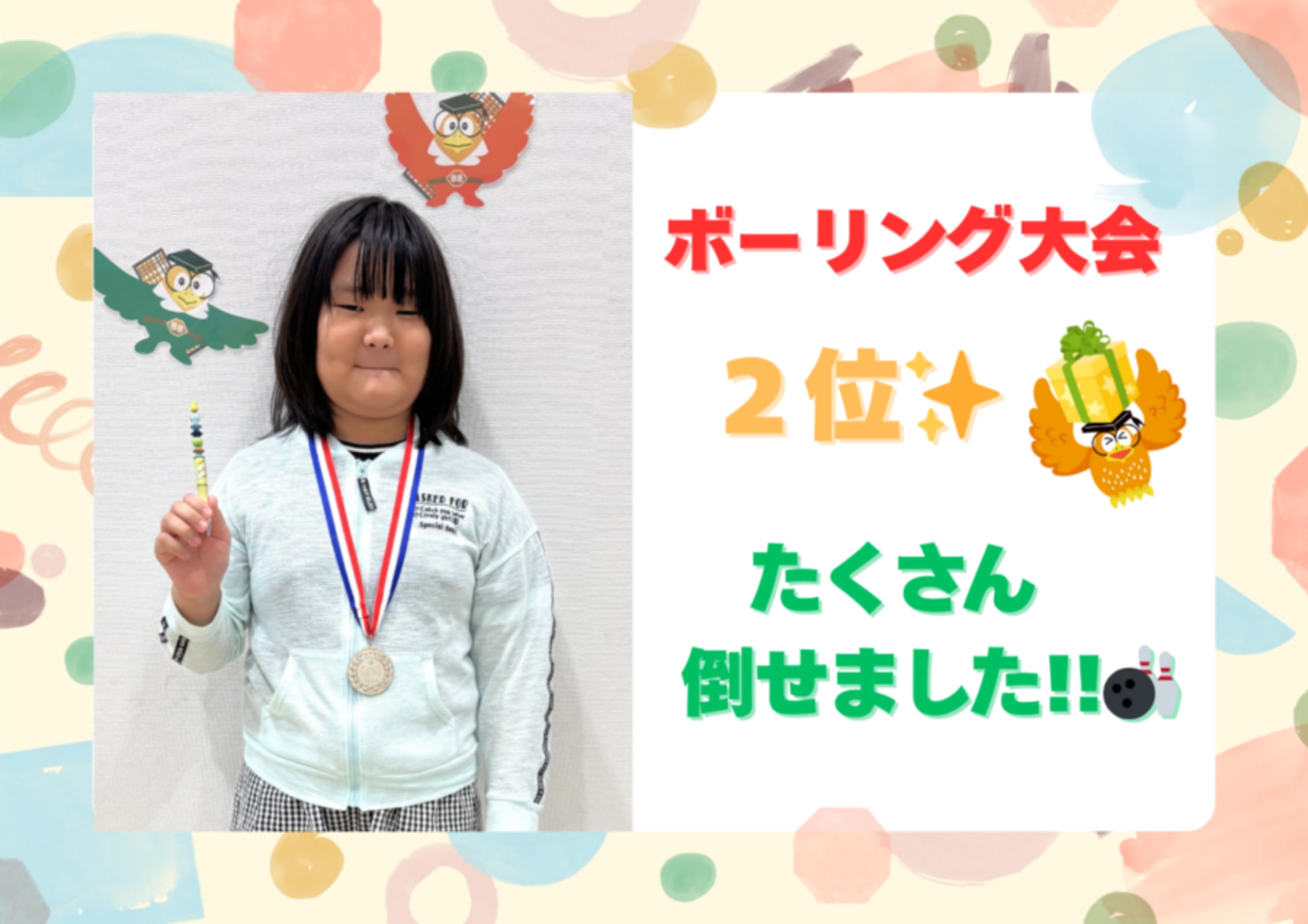 | 教室から一言 | 🎳ボーリング大会楽しかったよ(*^-^*)♪🎳🌞2025年おたのしみ会をしました🌞⛄⛄☆2025年 冬期講習をしました☆ ⛄⛄草加舎人教室は、年少~中学生さんまで幅広いご年齢の生徒様にお通いいただき、学校も学年も様々ですがみんな仲良く、時には競い合いながら、上を目指して頑張っています。夏期・冬期講習や日帰りイベントなどへはたくさんの生徒様にご参加いただき、そろばん学習だけでなく一緒にも遊んだりすることで、楽しい思い出作りにもなっているようです。ぜひ、ご体験レッスンにいらしてください。お待ちしております。♪★ 2024年 夏期講習をしました ★(*^-^*)まずはレッスンをご体験ください★体験レッスンはこちら👉メール👈 簡単にお申し込み・ご質問いただけます。(上記「メール」をタップしていただきますとお申し込みメールを簡単に送る事ができます!)平日10:00~18:00までのお問い合わせは、下記フリーダイヤルでもいただけます。👉TEL 0120-815-718👈(※夏期休業期間・年末年始はお休みをいただく場合がございます。)教室直通ダイヤル👉TEL 080-3548-0345👈※右記の日時に教室へ直通します。(月・火・水:14:30-19:30、土・日:10:00-19:00)なお、講師不在の場合やレッスン中はお電話に出られない場合がございますので、ご了承くださいませ。 |