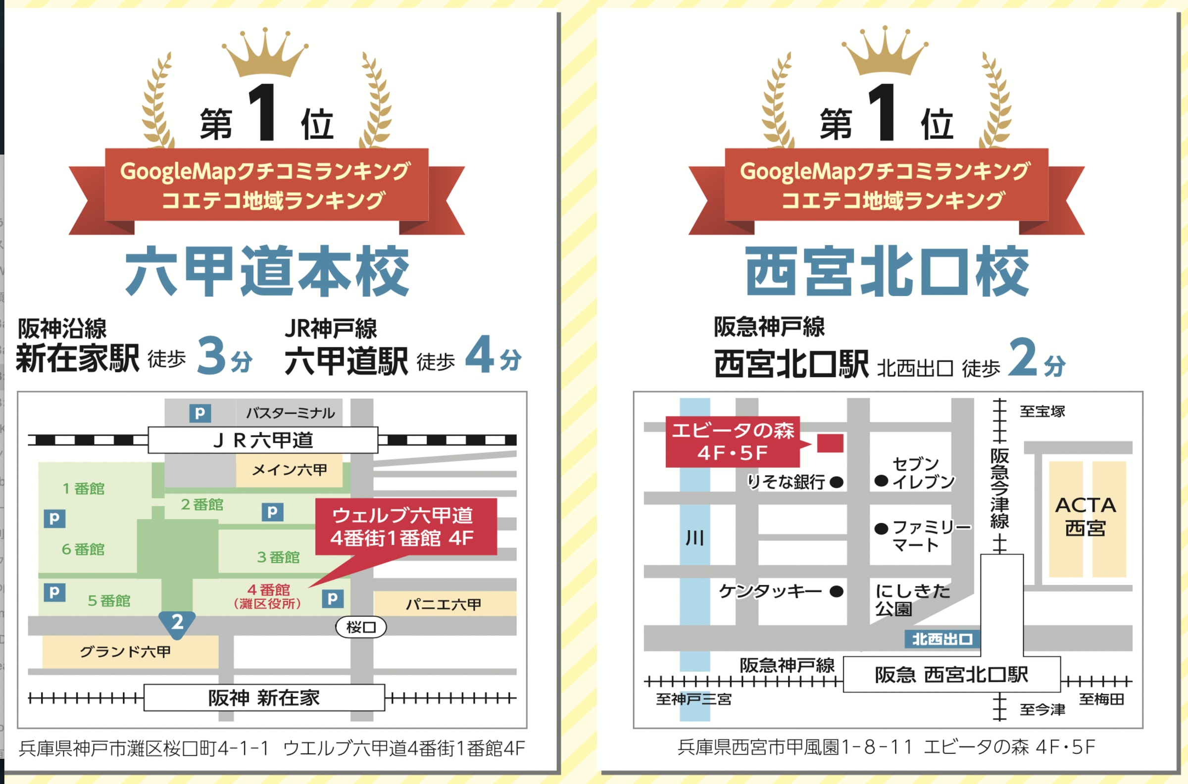 西宮北口駅から徒歩2〜3分と通いやすい場所にあるのも特徴です。