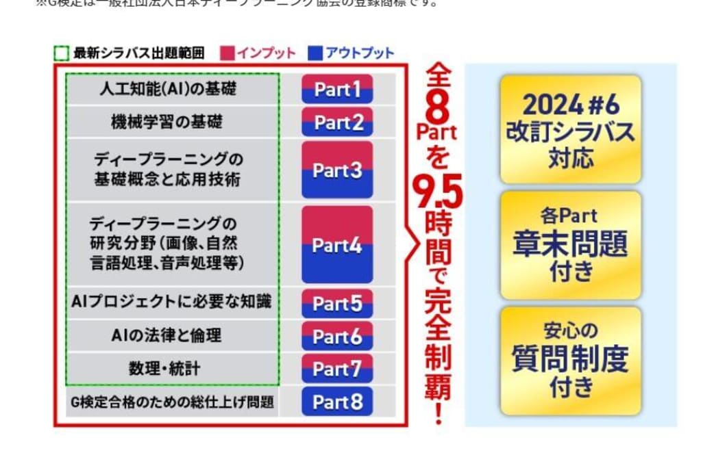 G検定は試験範囲が広いものの、本講座では9.5時間に凝縮した講座で短時間でインプットできます。