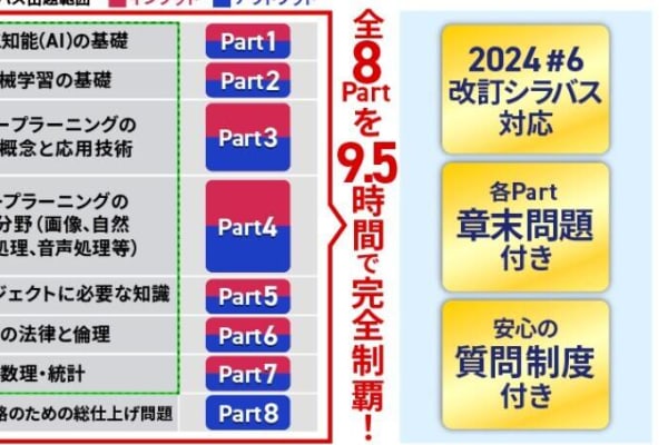 アガルートG検定対策講座は、AIの基礎から最新シラバス対応のG検定対策ができる講座です。