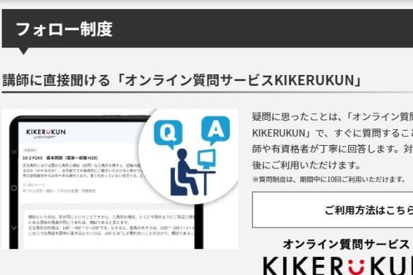 学習中の疑問は「オンライン質問サービスKIKERUKUN」で講師に直接質問できるので、これから学習を始める方も安心して取り組めます。
