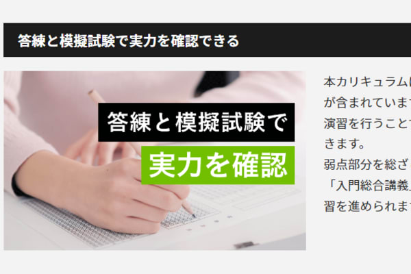 「入門総合カリキュラム/フル」は、講義に加えて過去問や記述式対策、実力テストなど、合格に必要なすべての要素が網羅された最も手厚いパッケージです。