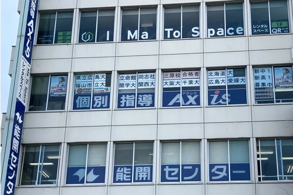 JR山陽本線 / JR山陽本線 / JR呉線 JR三原駅南口より徒歩2分 JR呉線の三原駅から南側を見ると、左方向に校舎が見えます。 ロータリーから三原駅(西)の交差点まで進み、左折して三原駅前の交差点まで直進すると右側です。 Axisのビルのとなりにはお肉の「中村屋」さんがあります。ビルの真正面の階段で2階へ上がるとエレベーターがあります。2階からエレベーターを使って4階へ上がると、教室の玄関です。 |