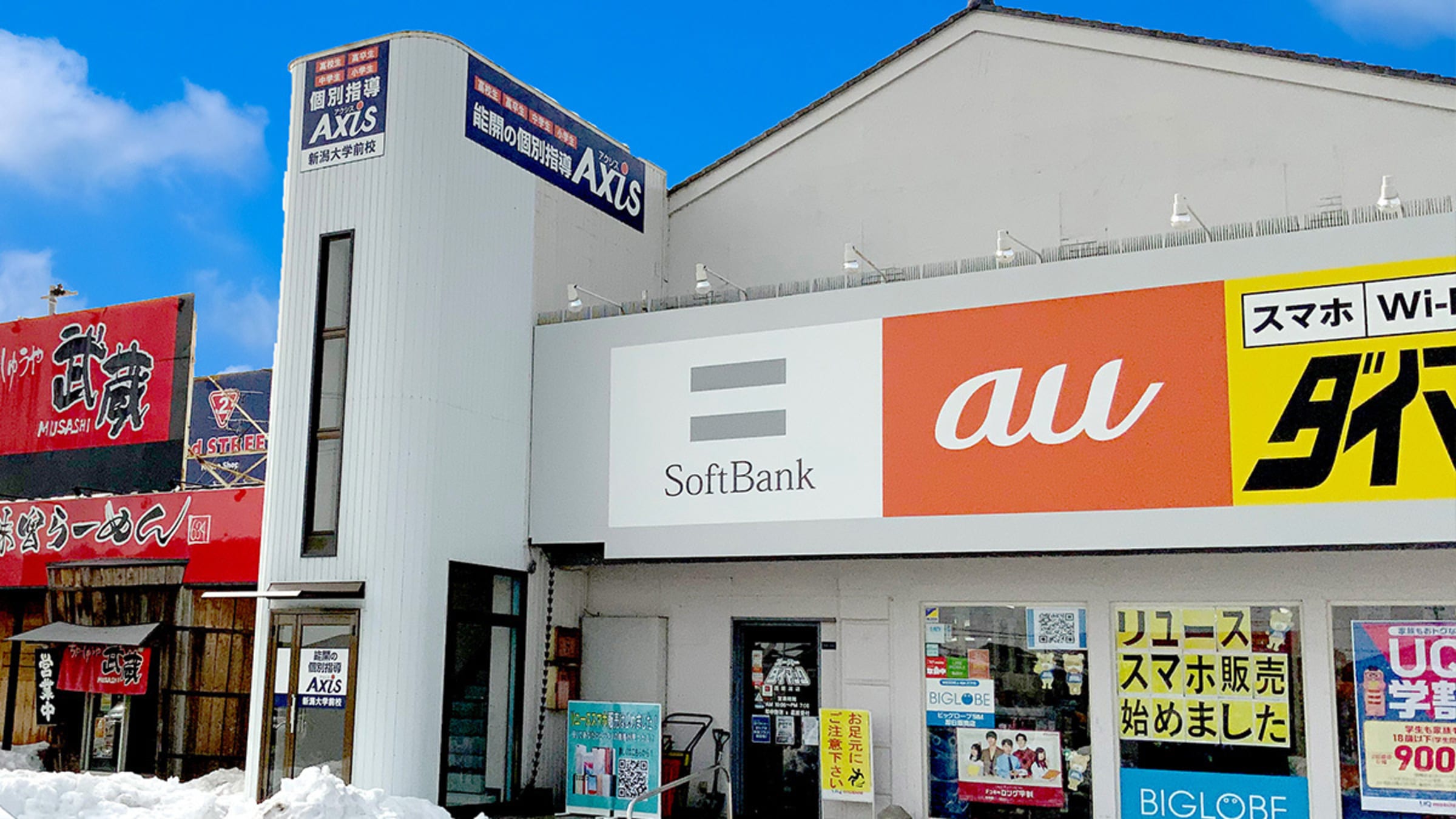 JR越後線 新潟大学前駅より徒歩5分 西大通りと新潟亀田内野線の交差点からも、看板が見えます。 1階に携帯ショップのダイマックさんが目印です。階段から2Fにお上がりください。 |