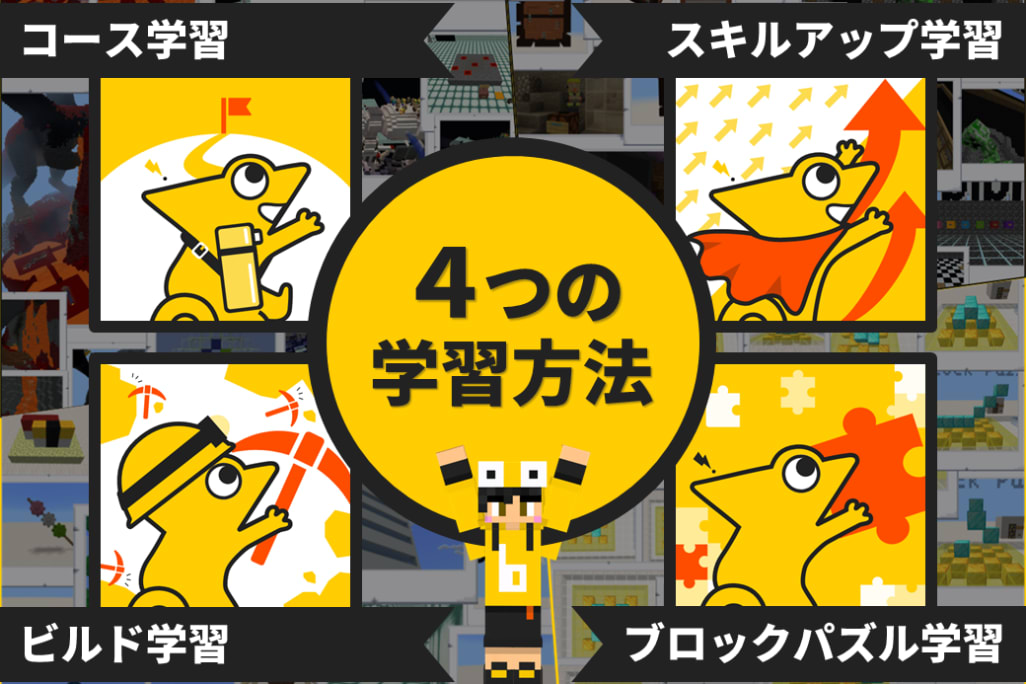 コース学習、スキルアップ学習、ビルド学習、ブロックパズル学習の4種類の学び方が用意された学習サイトを利用して自由に学んでいくことができます。
