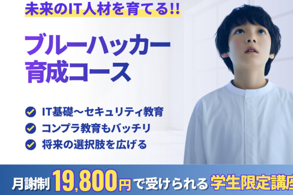 ブルーハッカー育成コースは、小学生から大学生を対象に、ITの基礎からセキュリティに関する実践的な内容まで 段階的に学べる学生コースです。 授業は毎月第1土曜日から第3土曜日にそれぞれ2時間、...