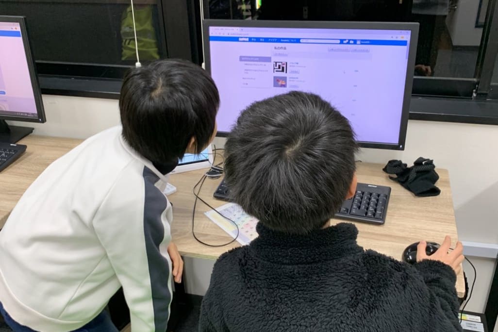 主にパソコンに向かって、Scratchを使って学習していくコースです。 オリジナルのゲームを自由に作れるようになる事が目標です。