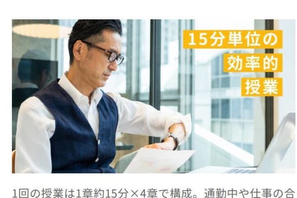 1回の授業は1章約15分×4章で構成。スキマ時間に学習しやすい