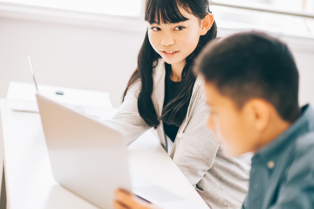 e-tech labでは、学習の進度は、お子さまに合わせて進めていきますが、分からないことは自ら友達や先生に聞くことにより、主体的に考え、解決をしていく姿勢を大切にします。先生が積極的に教えるのではなく、子ども同士で教え合う、学び合う空間に導いていきます。