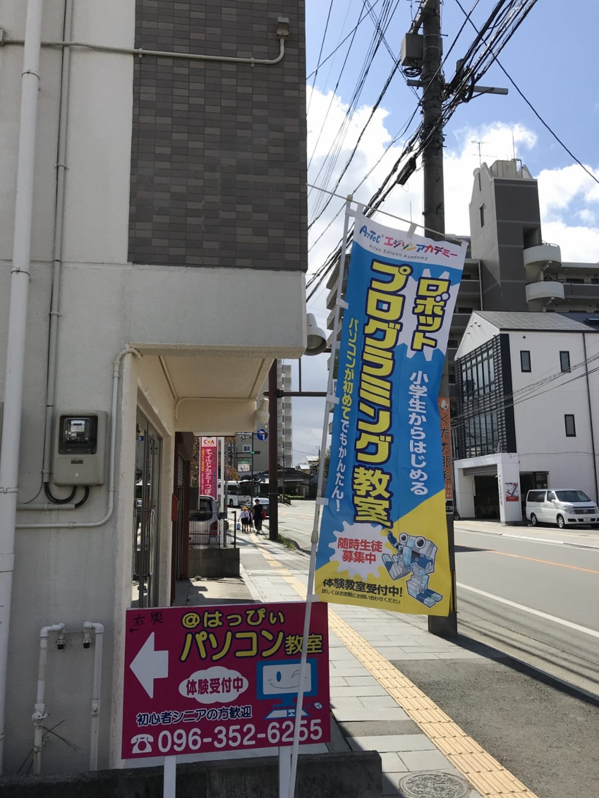 6人までの少人数で優しくゆっくりと習うことが出来ます。ヘッドホン等は使わず口頭でインストラクターが丁寧に説明しますので、ゲームをしている感覚ではなくロボット作りに取り組みながら、プログラミングを学習します。個別指導でマイペースで学習が学べます。プログラミング基礎から応用まで学習が出来ます。熊本附属小学校から350mに位置し、学校の帰りに徒歩で通われる方も多いです。京町本丁バス停横なのでバスで通うにも便利です。光の森校と花立校3校ありますので安心して受講が出来ます。 RKKテレビ「ウェルカム!」や熊日新聞クマトモさんにメディア掲載されました。YouTubeにも動画をUPしています。是非体験にお待ちしています! |