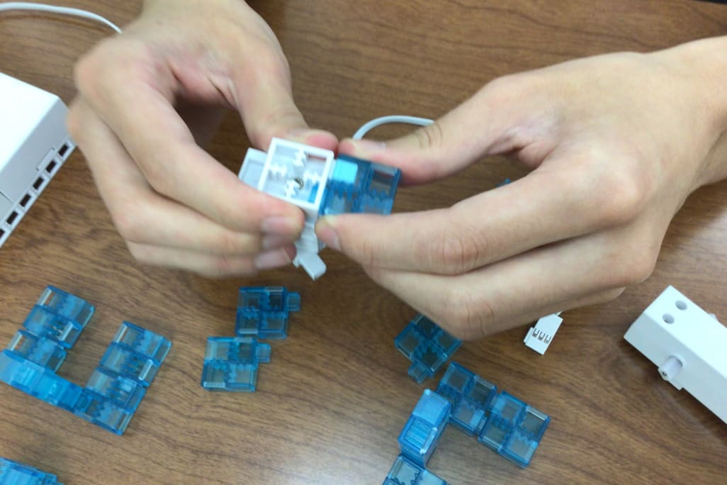 ソニー・グローバルエデュケーション開発の教材「KOOV®」を活用し、ブロックを組み立てながらプログラミングを学ぶことで、子どもたちは「どうしたらもっと面白くできるかな?」と自ら考え、試行錯誤する力を伸ばしていきます。