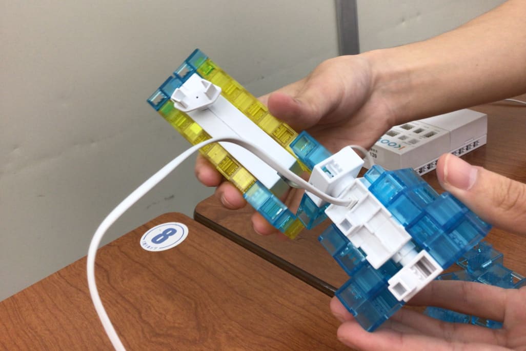 KOOVキットを組み立てて動かすことで、自分のプログラムと実際の動き「速さ」や「角度」「時間の長さ」など体感できます。