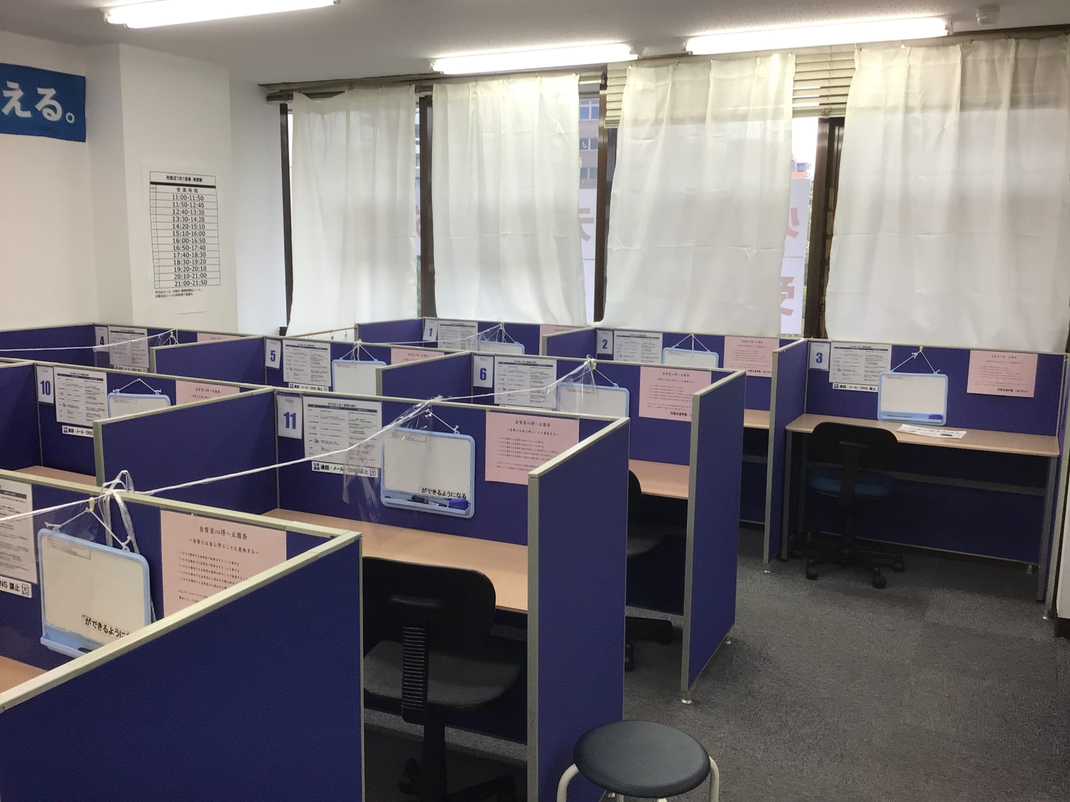 毎週平日(水曜日以外) 16:55~(90分) 毎週土曜日11:05~(90分)、13:35~(90分) ※生徒様のご予定に合わせて、スケジュールは柔軟に対応可能です。ご見学の際にご相談ください。 |