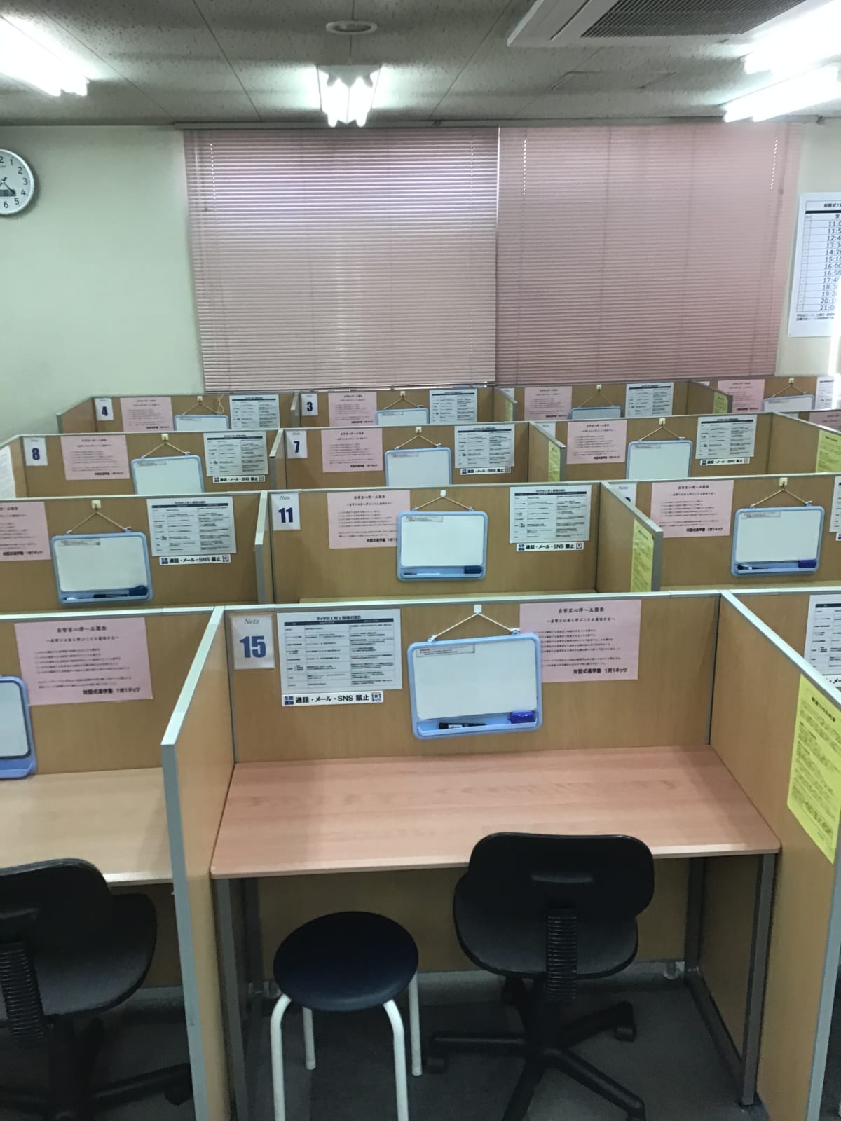 毎週平日(水曜日以外) 16:55~(90分) 毎週土曜日11:05~(90分)、13:35~(90分) ※生徒様のご予定に合わせて、スケジュールは柔軟に対応可能です。ご見学の際にご相談ください。 |