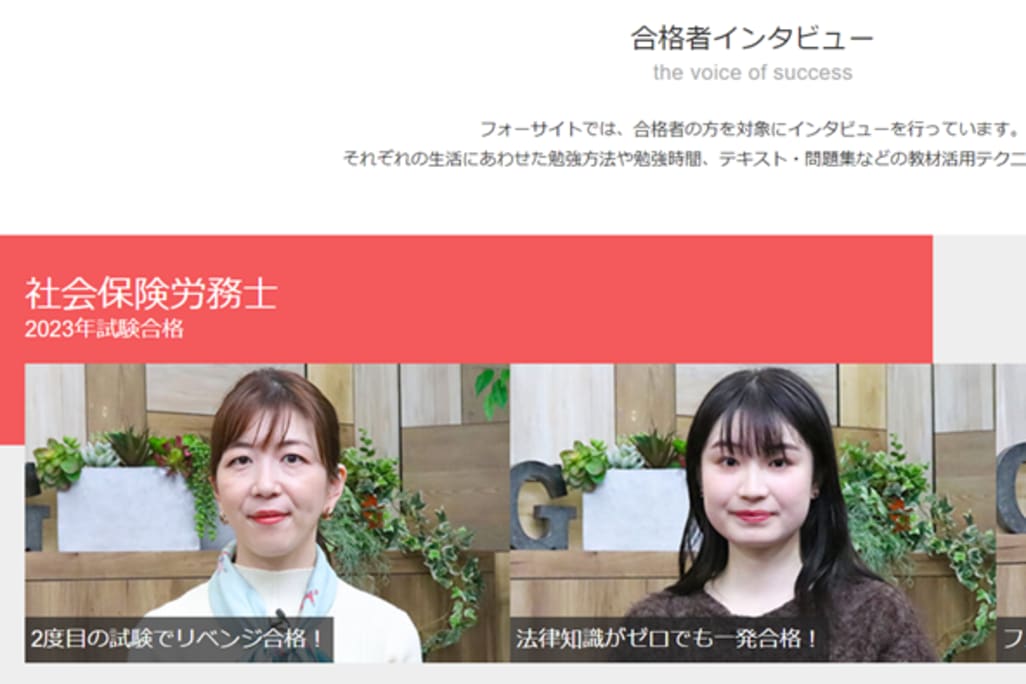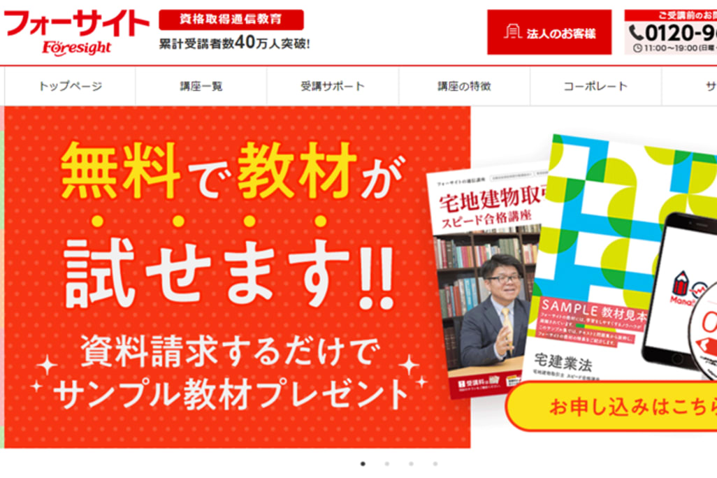 フォーサイトは、資格試験の通信講座・通信教育です。テキストも講義もダウンロード可能で、問題演習機能も豊富なので、試験対策に便利です。緻密に計算されたカリキュラムを採用したフォーサイトのカリキュラムでは、合格のための「効率的な学習」を提案しています。効率的に学べるカリキュラムにより、無駄なく学習を進められます。