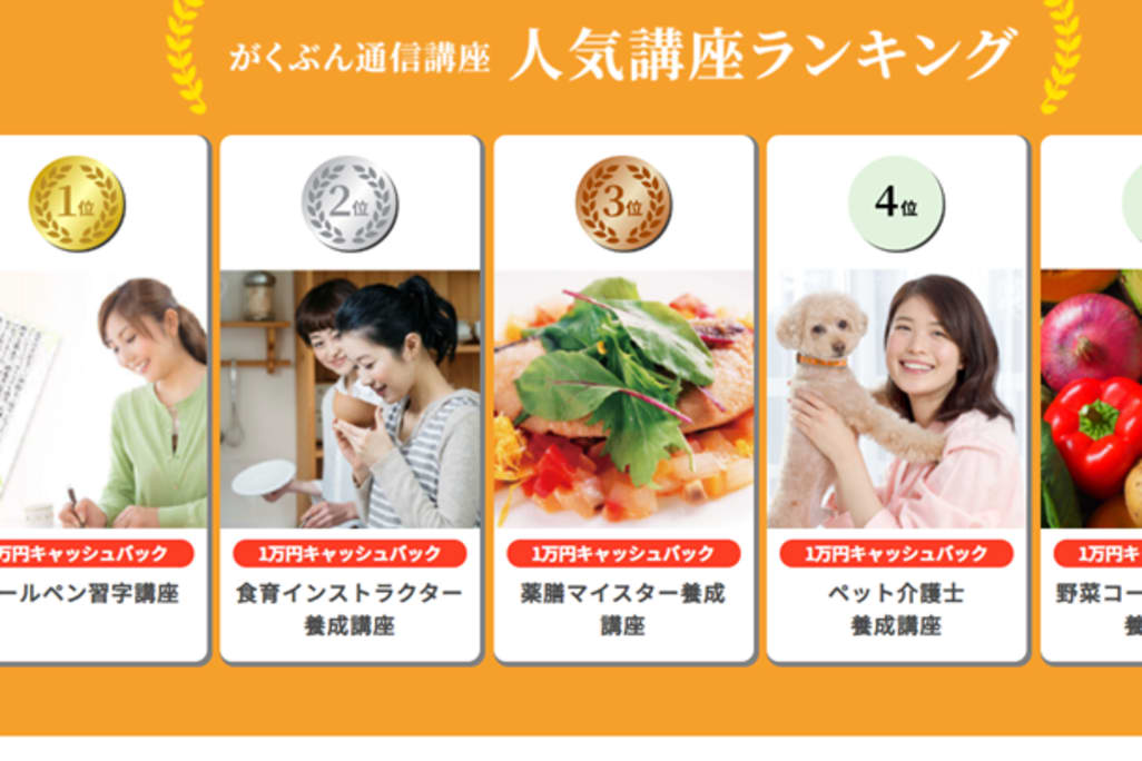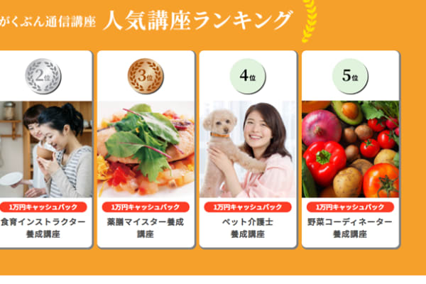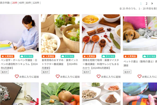 ペン習字から食育インストラクターなど、さまざまなスキルが身につく講座が豊富です。多くの講座から、求めるスキル・資格を取得できます。