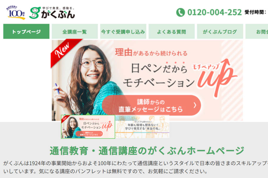 がくぶんは2024年に創業100周年を迎える、実績のある通信講座です。長く実績のある通信講座なので、安心して受講できます。