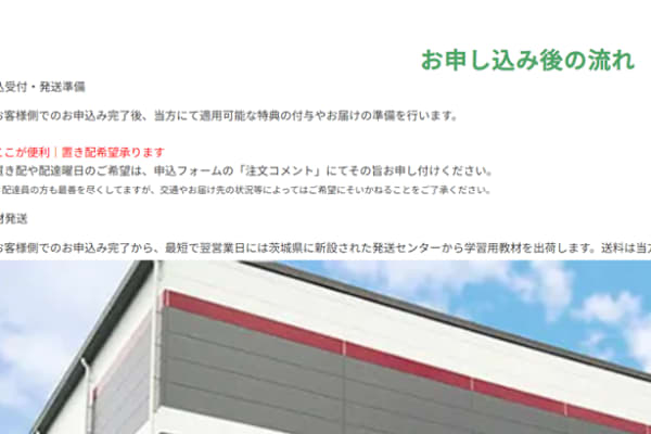 申込み完了後、最短で翌営業日には茨城県に新設された発送センターから教材を出荷します。