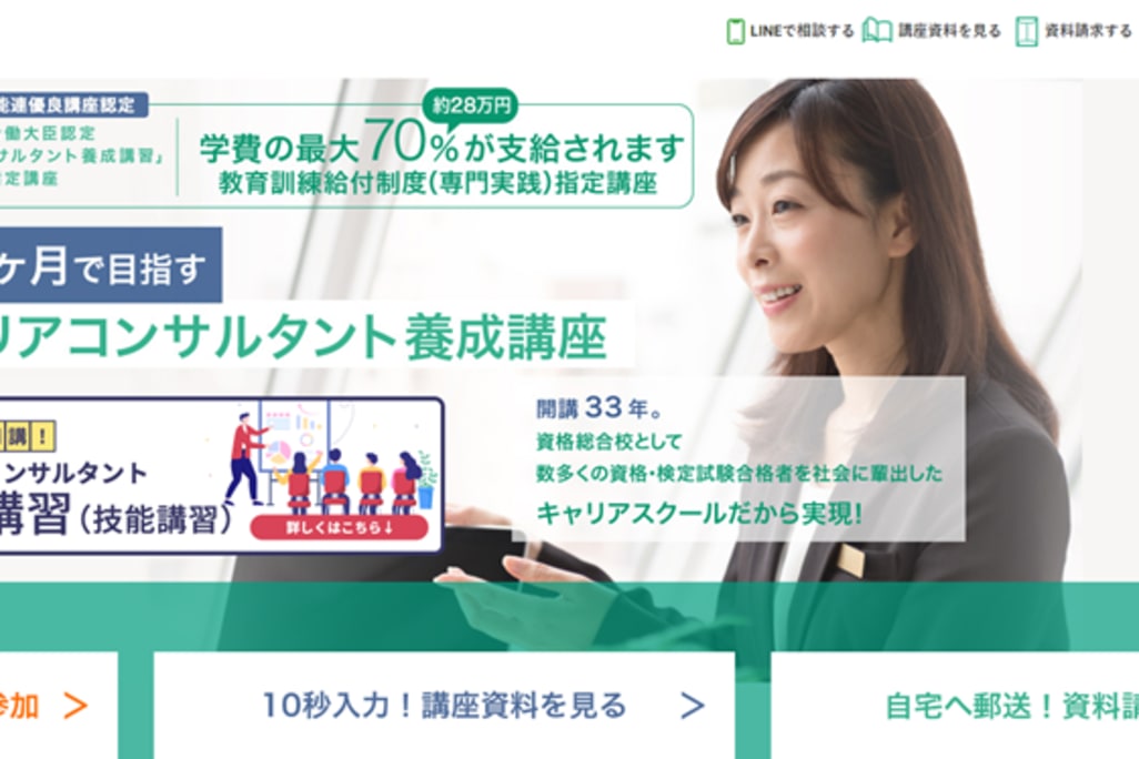 運営は、大手スクール事業運営会社であるヒューマンアカデミー株式会社。ヒューマングループは社会の要請に応えるために、「キャリアコンサルタント」の育成と地位向上に力を入れているので、確かなスキルが身につきます。「教育訓練給付金」制度に対応しているので、お得に学習することが可能です。通学スタイルと、リアルタイムで授業を配信するオンラインライブスタイルの2パターンから選べるので、自分のスケジュールにあった学習が可能です。