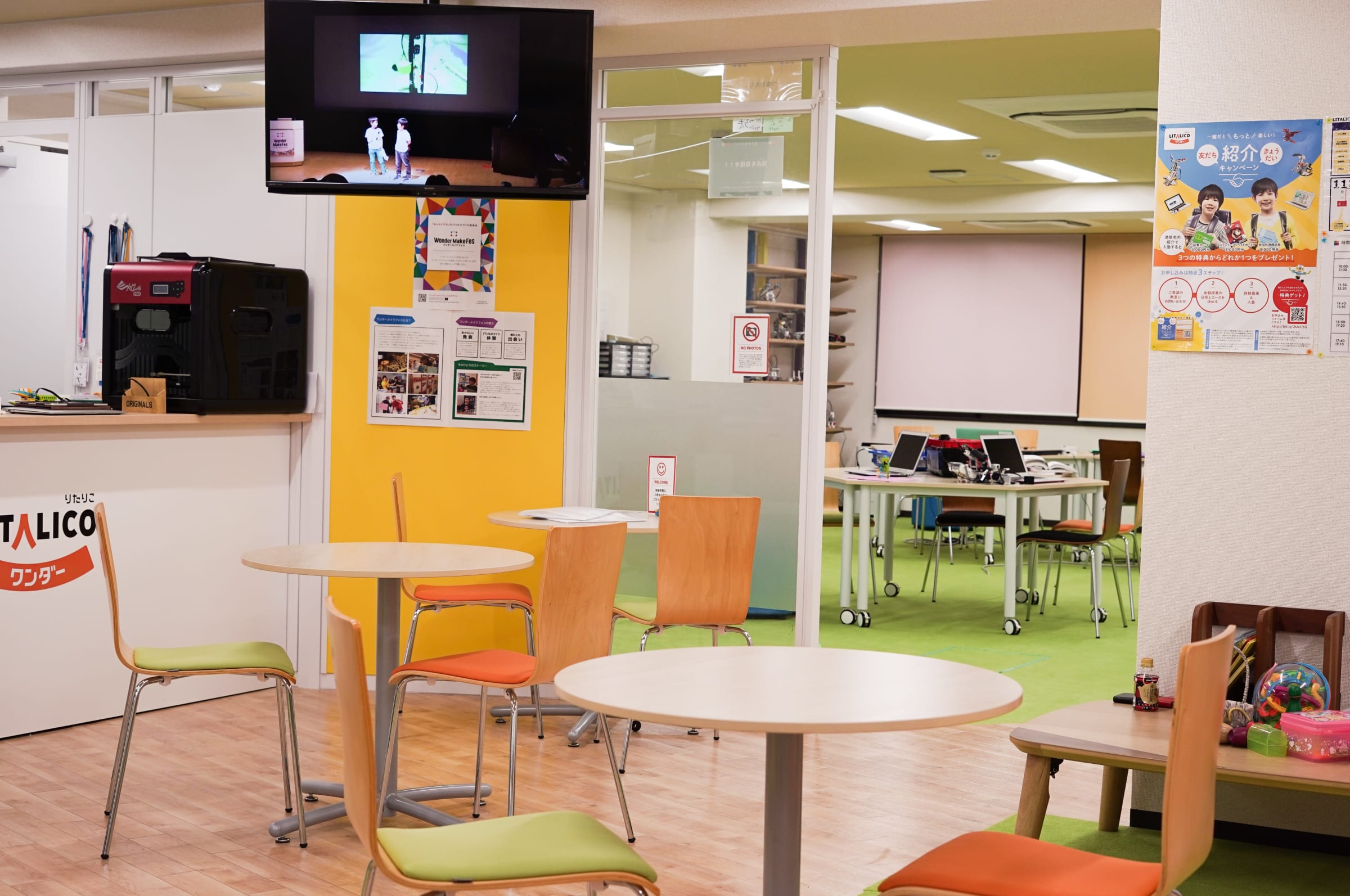 | 備考 | ■こだわりポイント ・保護者見学可(保護者用待合スペースあり) ・生徒用待機スペースあり ・授業振替制度あり ・教室変更制度あり (※同系列他教室への変更) ・きょうだい割引あり ■イベント&講習 ・作品発表会『ワンダーメイクフェス』を開催(定期開催) -参加任意、来場無料 -発表サポートやリハーサルとして参加費が発生します。(発表スタイルに応じて金額は変動します) 【2017年度開催実績】 -日本科学未来館で開催 -来場者:4500名以上/発表者:500名以上 -PC、iPad、ロボット教材 (ロボットクリエイトコースのみ)は教室で無償貸与 -ロボットテクニカルコースはロボット教材の購入が必要です。購入に関しては教室へお問い合わせください。 ・ラボ(季節講習) 長期休みの時期に単発参加ができるワークショップを複数用意しています。最新ガジェットを使用したものや友達や家族と協力して参加できるものなど、長期休みだからこそ挑戦できるコンテンツを多数用意しています。 ・ワークショップイベント ラボ(季節講習)とは別に、ものづくりやIT系企業とのコラボイベントや教室単位での特別ワークショップなども随時実施しています。普段の授業だけでは得られない経験から、子どもたちの可能性を引き出す機会となっています。 |