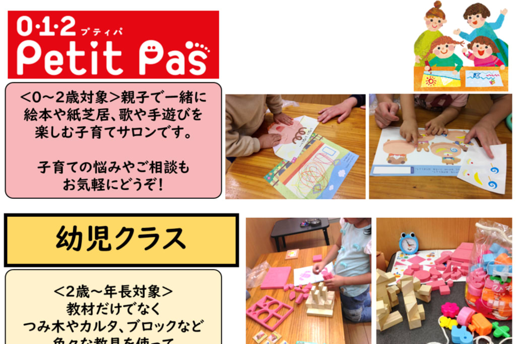 春の入学にむけて、準備をはじめませんか?全国テスト一位を多数輩出する当教室にお任せください。 学びはスタートが大切。学習習慣を身に着けるのは低学年での取り組みがカギです。 幼児コースは、プリントだけでなくパズルや積み木などの教具も使い楽しみながら学習します。 埼玉県家庭教育アドバイザーで小学校・幼稚園教諭一級免許を持つ指導者です。 学習に不安な方、先取りで進みたい方、お子様の実力に合わせて指導します。 ●2歳~3年生の無料学習体験参加者募集中 人気教室につき定員はわずか。早めにご予約を。 ●『012プテイパ』は、絵本や紙芝居、工作など親子で楽しい時間を過ごします。 9月18日 10月23日 10時15分から11時 日程が合わない場合はご相談ください。 ●10月25日漢字検定 受付中 |