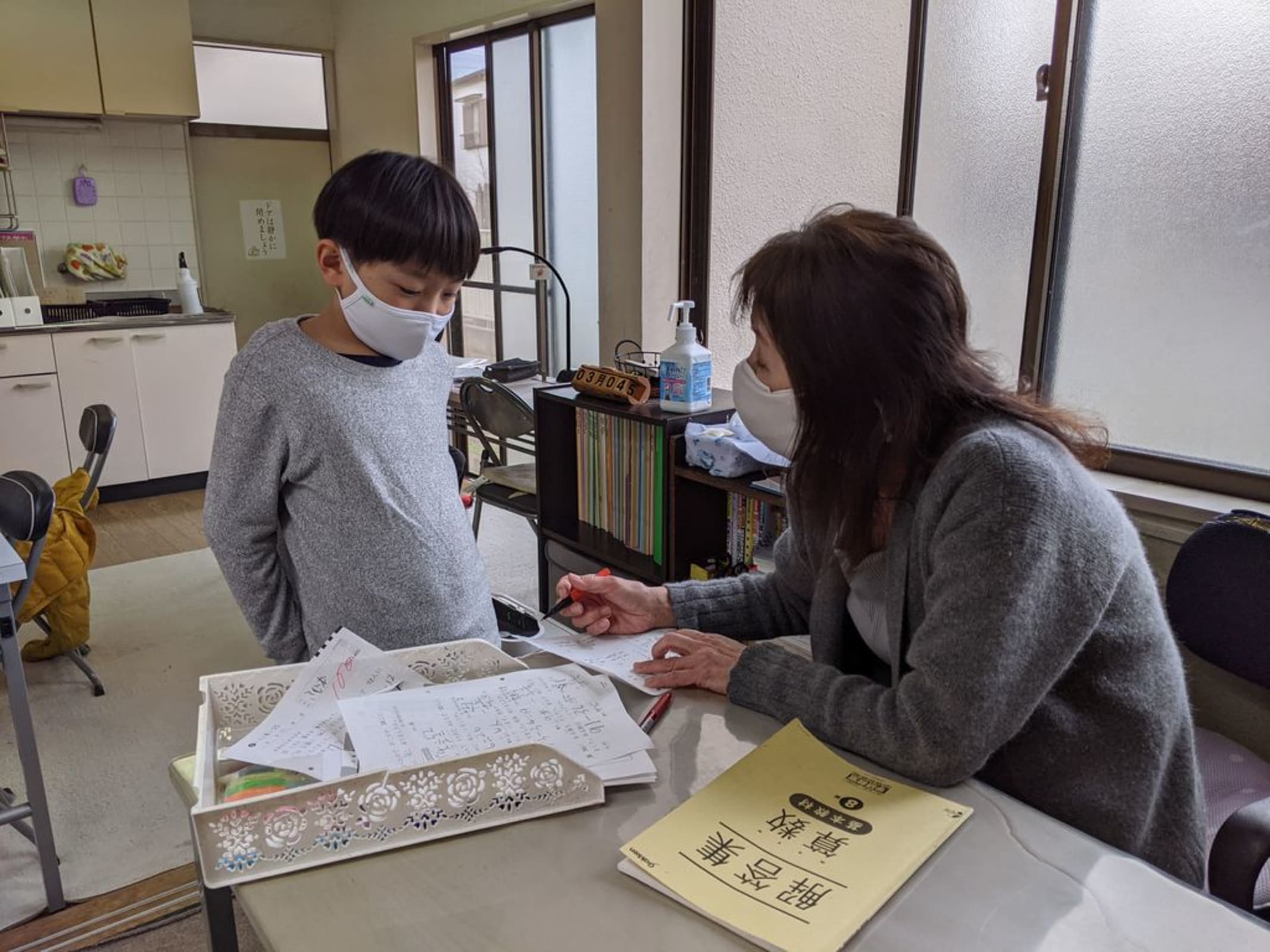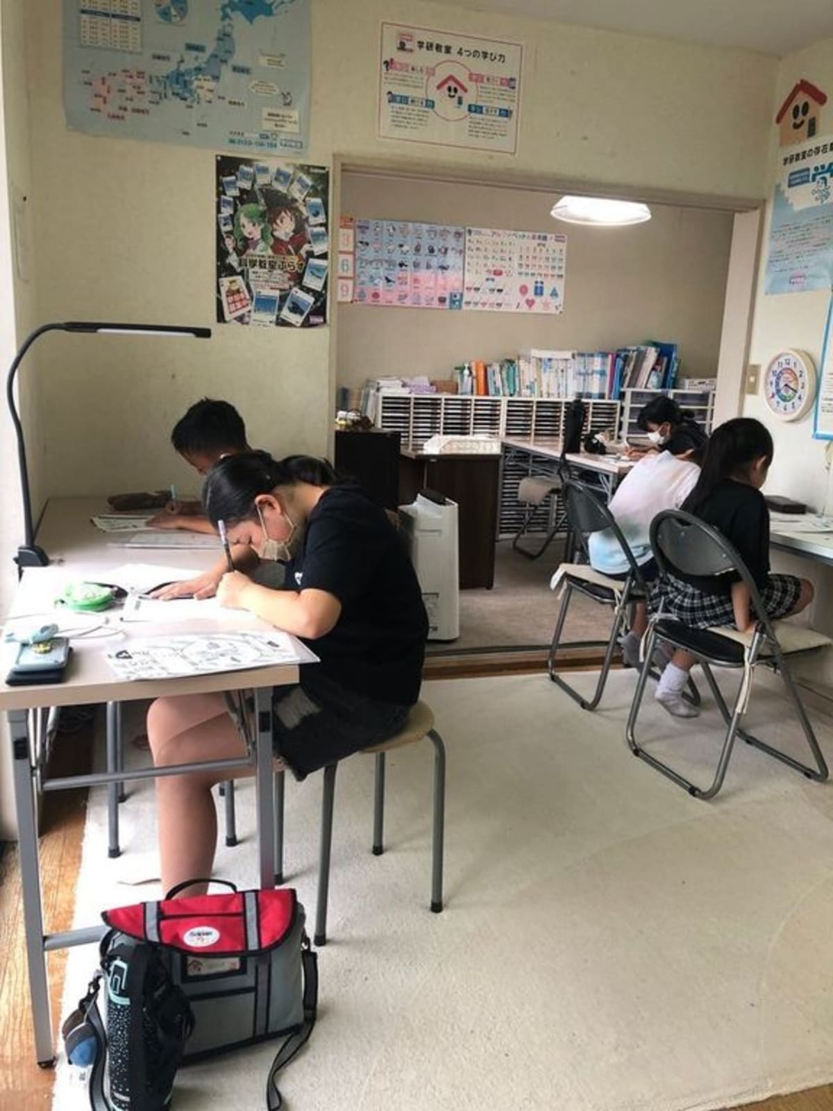 松ノ木教室では、アクリル板の設置、少人数制、マスク着用と感染対策を講じながら学習をすすめております。安心して通える教室です。